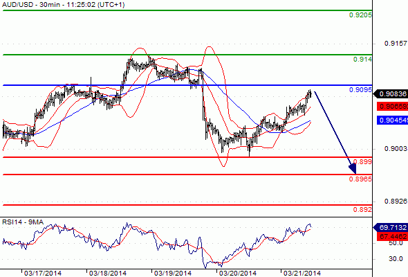 Comment: the upward potential is likely to be limited by the resistance at 0.9095.