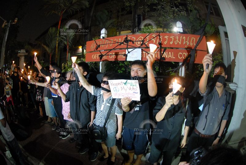 เมื่อเวลา 19.00 น. วันที่ 21 มีนาคม ที่ถนนจักรเพชร สำนักงานศาลรัฐธรรมนูญเก่า ผู้สื่อข่าวรายงานว่า ทางกลุ่มเครือข่ายนักจุดเทียน ได้นัดประชาชนทั่วไปทุกสาขาอาชีพมาทำกิจกรรมเชิงสัญลักษณ์ด้วยการให้ศาลรัฐธรรมนูญลาออก อีกทั้งยังไว้อาลัยให้กับความยุติธรรมในสังคมไทย ผู้สื่อข่าวรายงานว่ากิจกรรมดังกล่าว ประชาชนได้นำเอาผ้าสีดำมาผูกที่รั้วเเละบริเวณป้ายศาลรัฐธรรมนูญ เเละต่างพากันใช้ผ้าสีดำปิดตาเเละปาก พร้อมกันนี้หลายคนยังได้นำกระดาษที่ระบุข้อความวิจารณ์การปฏิบัติหน้าที่ของศาลฯ ติดตามรั้วอีกด้วย จากนั้นทางกลุ่มประชาชนได้ร่วมกันจุดเทียน อันเป็นกิจกรรมเชิงสัญลักษณ์ต่อการวิพากษ์วิจารณ์คำวินิจฉัยหลายกรณีของตุลาการศาลรัฐธรรมนูญที่ละเมิดเสียงของประชาชน
