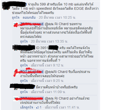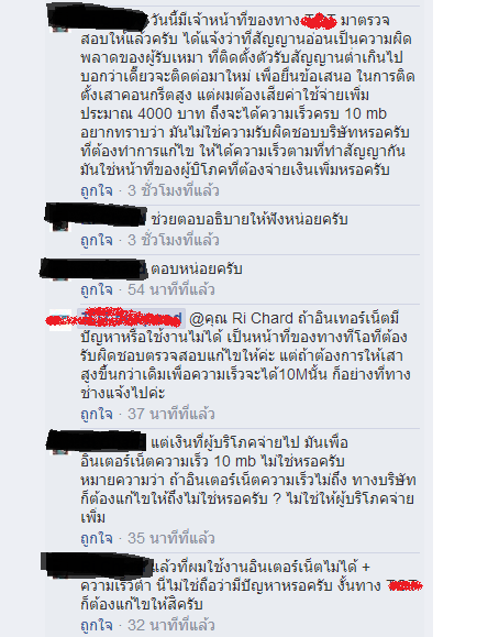 ประเด็นคือ อยากทราบว่า การแก้ไขสัญญานอินเตอร์เน็ตให้ได้ความเร็วตามที่โฆษนา ไม่ใช่หน้าที่ของบริษัทหรอครับ ในเมื่อเงินที่จ่าย
