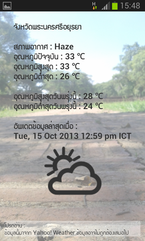 -พยากรณ์อากาศของจังหวัดอยุธยา (ข้อมูลจาก Yahoo! Weather)