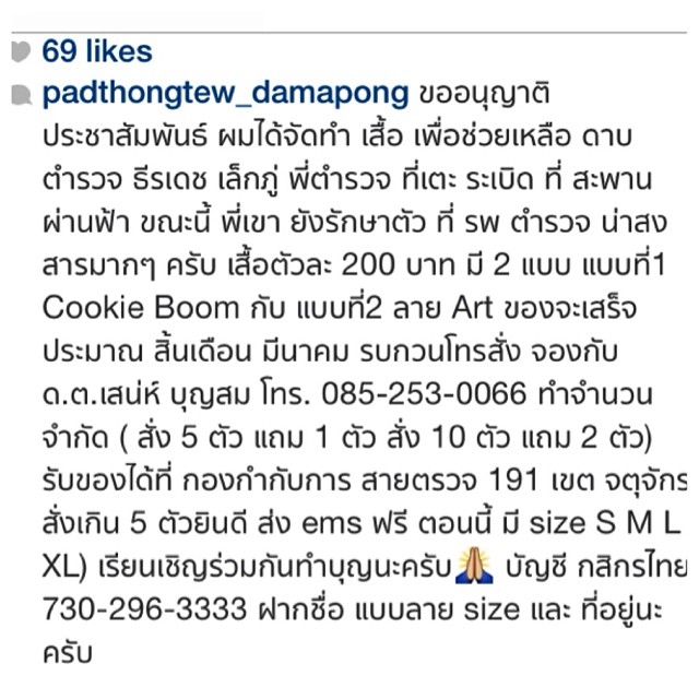 สำหรับคนที่อยากช่วยเหลือพี่ตำรวจที่ได้รับบาดเจ็บนะคะ