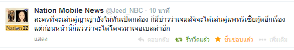 เห็นนักข่าวคนนี้บอกไว้ ถ้าจริงจะเป็นเรื่องแรกที่แสดงกับคนที่อายุน้อยกว่า RT @Jeed_NBC: ละครที่จะเล่นคู่ญาญ่ายังไม่ทันเปิดกล้อง ก็มีข่าวว่าเจมส์จิจะได้เล่นคู่แพทริเซียกู๊ดอีกเรื่อง แต่ก่อนหน้านี้ก็แว