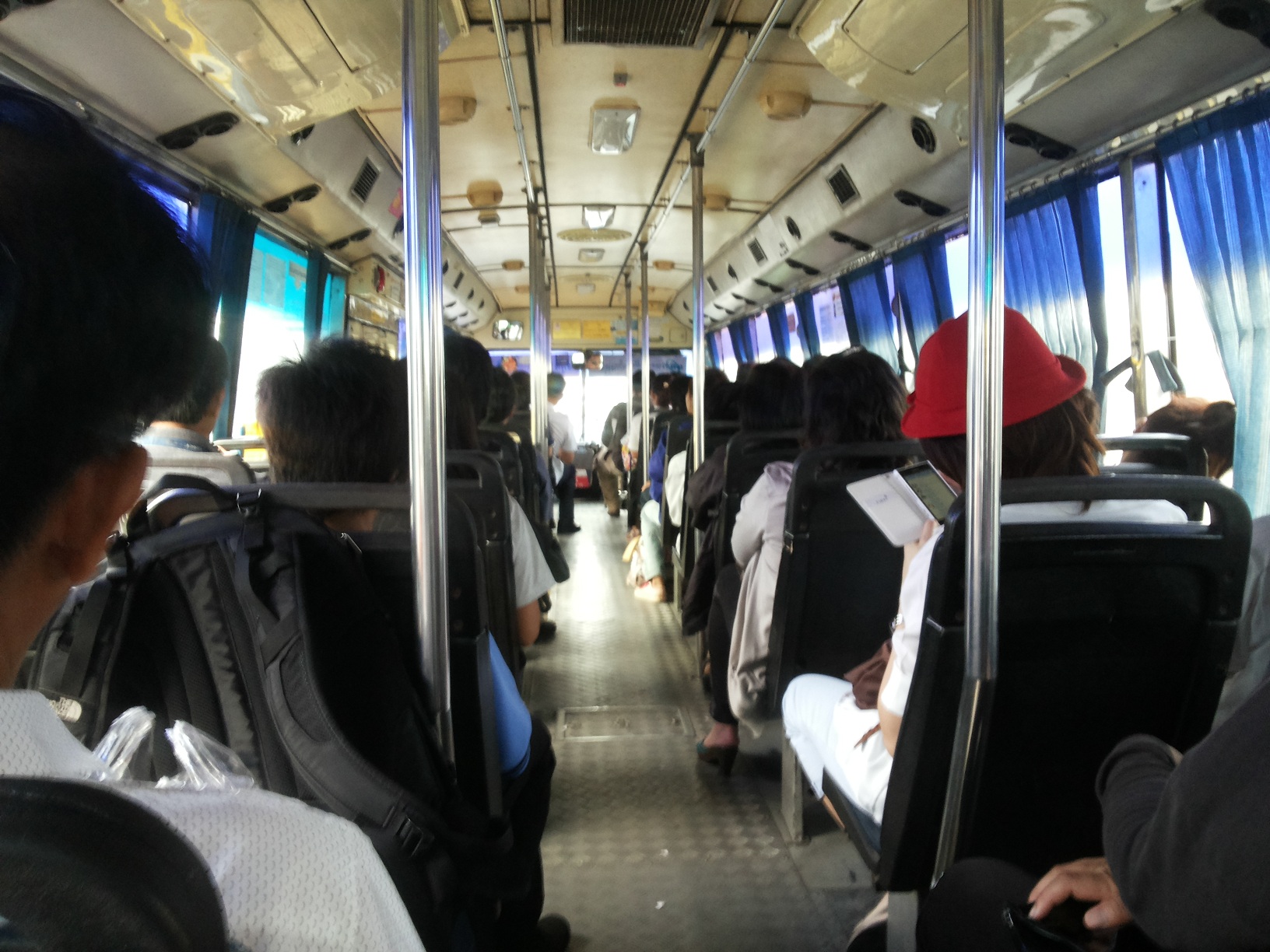 สำหรับผมเลือกนั่งรถเมล์ไปครับ ไม่ชอบอึดอัด จากรูปจะเห็นได้ว่าได้นั่งทุกคนนะ