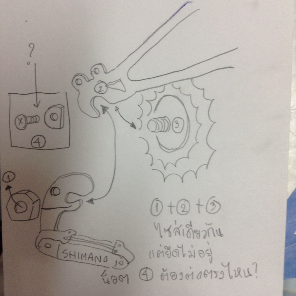 มันพอดีอยู่รูนึงคือ รูเล็กๆ เหนือเขี้ยวเกียร์เบอร1 แต่ถ้าจิ้มรูนั้นจะไปยึดกับรูไหนของเฟรมอะคะ