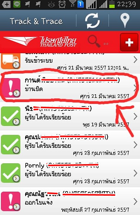 ของเราคืออันที่วงกลม " บ้านปิด " ตลอดดดดดดดดดดดดด กี่ครั้งๆก็บ้านปิด ใบแจ้งก็ไม่เห็น