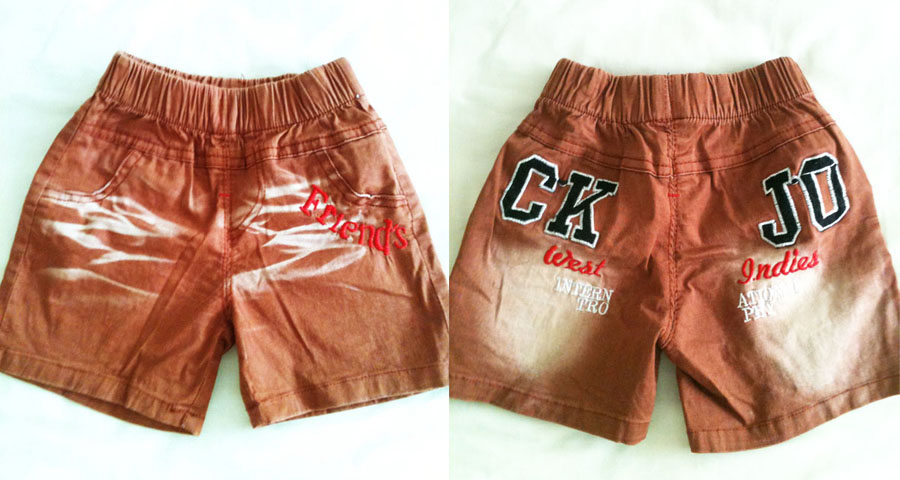 2. กางเกงขาสั้นยีนส์ฟอกสีอิฐ ประมาณ size 80-90 ส่งต่อ 90 บาท