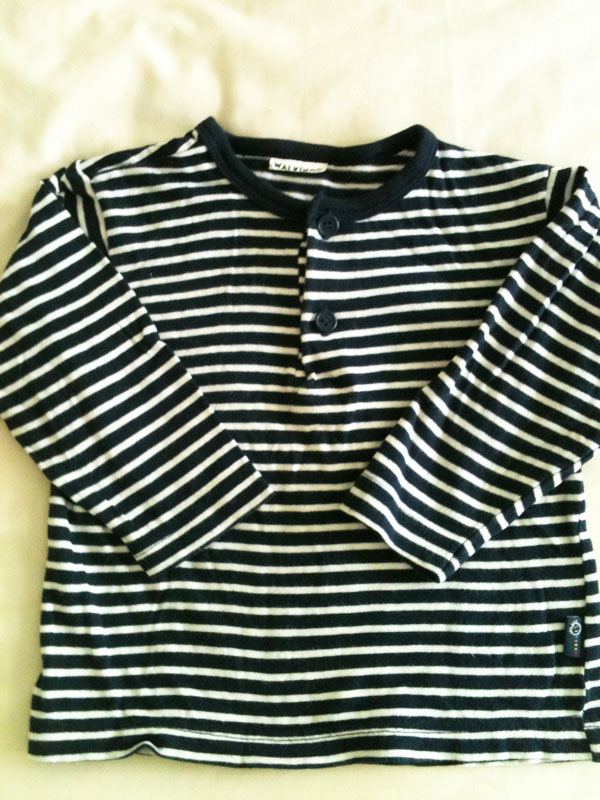 4. เสื้อแขนยาวผ้ายืดนิ่มคอกระดุม ประมาณ size 90 ส่งต่อ 90 บาท