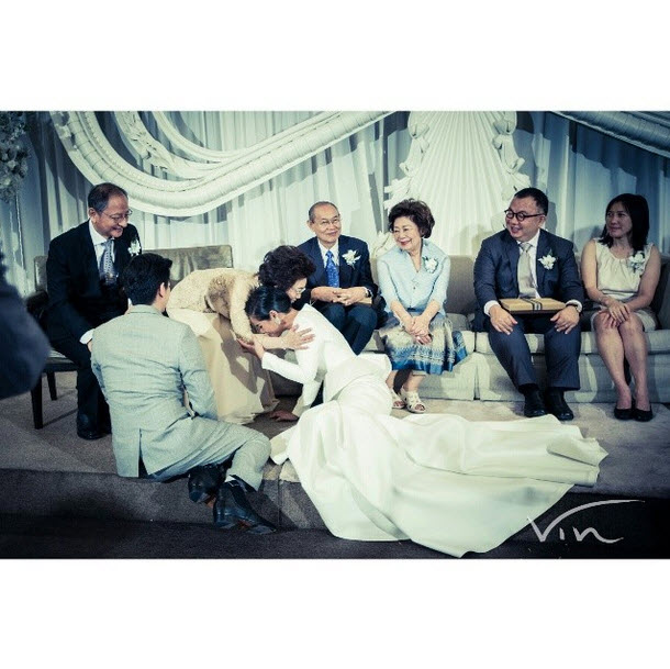 โอปอล์ ปาณิสรา ปลื้มปิติถึงกับกลั้นน้ำตาไว้ไม่อยู่ขณะก้มลงกราบคุณแม่ ในงานแต่งตนเองเมื่อวานนี้ (23 มีนาคม 2557) หลังจากแฟนหนุ่ม หมอโอ๊ค สมิทธิ์ ยกขบวนขันหมากมาสู่ขอ และเปลี่ยนมาใช้นามสกุลฝ่ายชาย "อารยะสกุล"