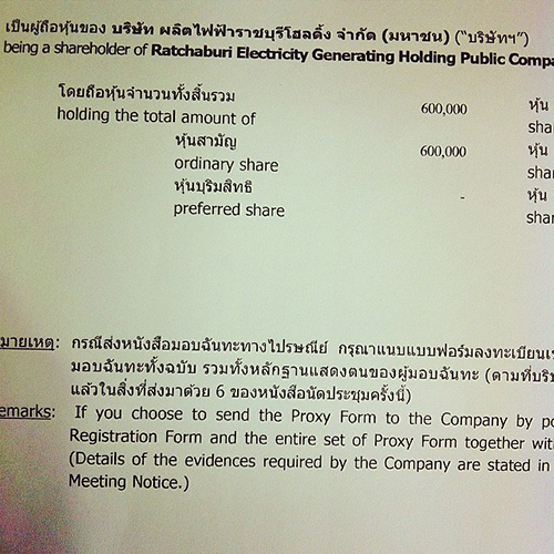 แต่อย่างไรก็ดี อย่างน้อยที่สุด การเป็นผู้ถือหุ้นและไปประชุมผู้ถือหุ้น ก็จะได้สิทธิ์ในการพบเจอผู้ถือหุ้นรายอื่นๆ รวมถึงการสอบถามข้อซักถามต่างๆของบริษัทจากกรรมการหรือผู้บริหารของบริษัทได้ ซึ่งส่วนนี้ผมมองว่ามีความสำคัญมาก และอยากให้ทุกคนให้ความสำคัญ แม้เราจะเป็นผู้ถือหุ้นเพียงน้อยนิดที่ไม่อาจไปกำหนดนโยบายบริษัทได้ แต่อย่างน้อยที่สุดสิทธิ์ที่เราจะซักถามในประเด็นที่มีประโยชน์ เราก็ย่อมมีเช่นกัน
