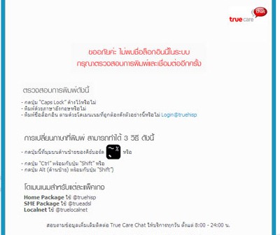 net hi-speed ของ true ขึ้นว่าขออภัย ไม่พบชื่อล็อคอินนี้ในระบบ ใครเคยเจอบ้างครับ