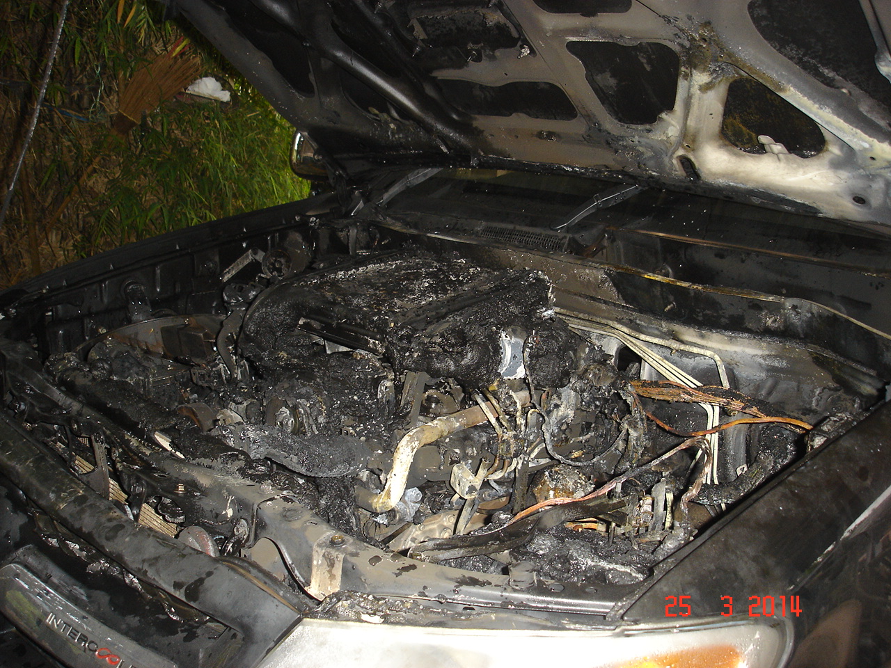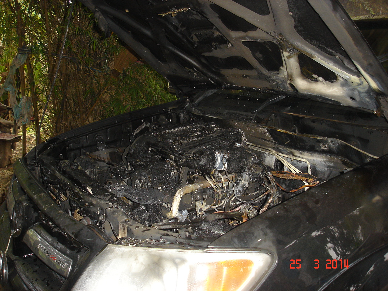 วีโก้..3.0 ปี 2550 รถจอดไว้เฉยๆๆ แล้วไฟใหม้ห้องเครื่องรถ จอดรถไว้ตอนเย็นเลิกงาน แล้วเกิดไฟใหม้ตอน เวลา 02.00 น. วันที่ 25 มี.ค 57 ดังภาพ