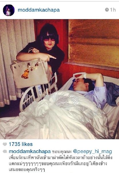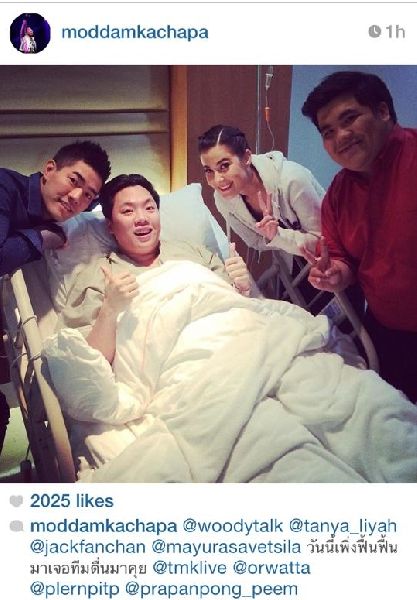 กระทั่งตั้งแต่เมื่อช่วงสายๆ วันอังคาร 25 มีนาคม บรรดาเดอะแก๊ง ดารา-นักแสดง-พิธีกรร่วมก๊วน ไม่ว่าจะเป็น วู้ดดี้ มิลินทจินดา ,แจ๊ค แฟนฉัน, ธัญญา ธัญญาเรศ เองตระกูล , หนุ่ม -กรรชัย กำเนิดพลอย ก็ทยอยไปเยี่ยมมดดำ ที่ฟื้นจากการผ่าตัด ที่ ณ ตอนนี้ อาการปลอดภัย หายห่วง กลับมามีสีหน้าแจ่มใส และร่าเริง แทบจะเหมือนเดิมแล้ว