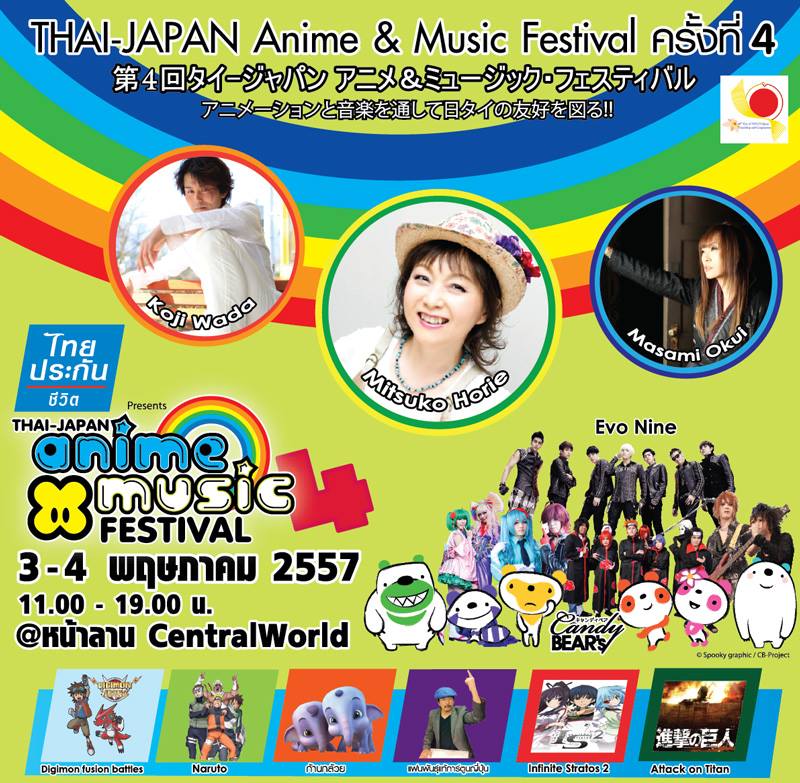 งานอนิเมชั่นและเพลงการ์ตูนที่ใหญ่ที่สุดในประเทศไทย Thai-Japan Anime&Music Festival ครั้งที่ 4 จัดเต็ม ณ หน้าลานเซ็นทรัลเวิลด์ วันเสาร์และอาทิตย์ที่ 3-4 พฤษภาคมนี้ คอเพลงการ์ตูนห้ามพลาด!!