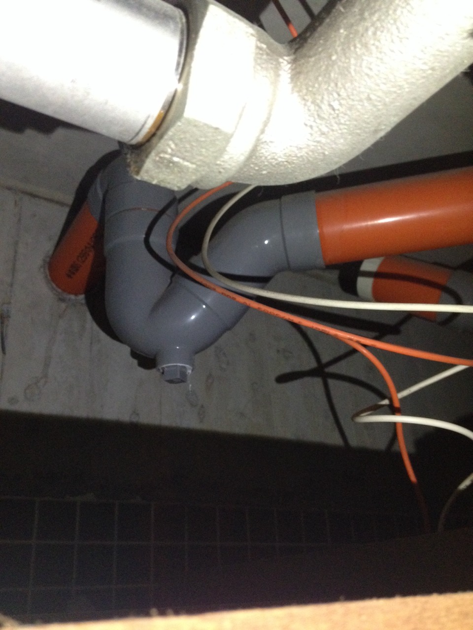 คือเวลาห้องชั้นบนอาบนํ้าเสียงดังทิ้งจะดังมากครับ ผมลองเปิดเพดานขึ้นไปดู มันจะดังตรงช่วงงอครับ