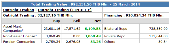 ตามประเภทนักลงทุน ประจำวันที่ 25 มีนาคม 2557 ดังนี้