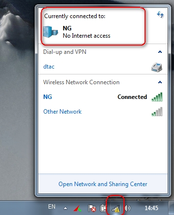 แชร์มาใช้ที่ Notebook เวลาสัญญาณ 3G หาย ก็ขึ้นแบบนี้ รอสักพักจะหาย