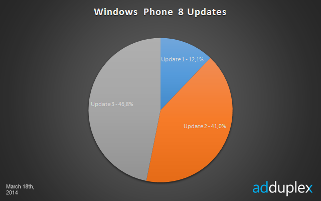 AdDuplex ได้เปิดเผยสถิติของเดือนมีนาคมที่ผ่านมา ว่ามียอดการใช้งาน Windows Phone 8 ที่อัพเดต GDR3 แล้วอยู่ 47% และรุ่นที่ได้รับความนิยมยังคงเป็น Nokia Lumia 520 เช่นเคย