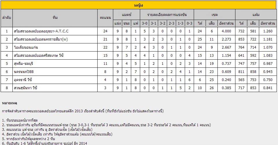 อันดับทีมหญิงหลังแข่ง 9 นัด