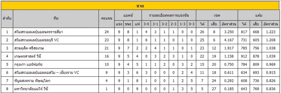 1. นครราชสีมา ชนะ 8 แพ้ 1 มี 24 คะแนน