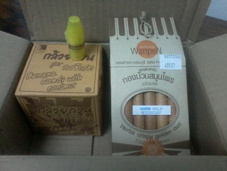 - คนสาม มกบบ สาวใสใฝ่ธรรมมะ ส่งกล้วยกวนและทองม้วนอร๊อยอร่อย มาให้ ชอบอ่ะค่ะ อร่อยทุกอย่าง