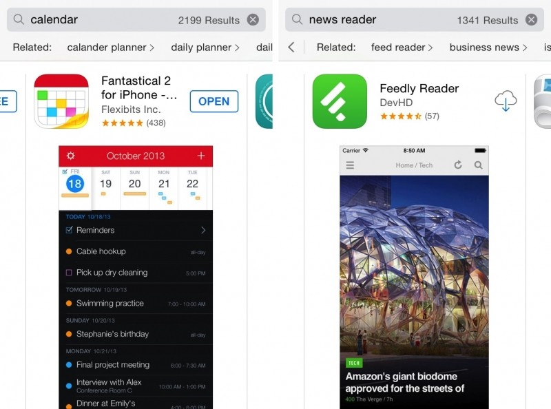 แม้เพิ่งจะปล่อยดาวน์โหลดเวอร์ชั่นเต็มใหม่ล่าสุด iOS 7.1 ไปเมื่อสองสัปดาห์ก่อน แต่กระนั้นทีเด็ดของแอปเปิลก็ยังไม่หมด เมื่อล่าสุดวันนี้ แอปเปิล ได้ประกาศว่า กำลังเตรียมที่จะเริ่มต้นทดสอบฟีเจอร์ใหม่อย่างการ 'แนะนำคำค้นหา' ลงบน App Store ซึ่งถูกออกแบบมาเพื่อปรับปรุงประสิทธิภาพการทำงานให้ดีขึ้น รวมถึงยังเป็นการช่วยให้สามารถค้นพบแอพพลิเคชั่นใหม่ๆ ได้อีกด้วย อย่างไรก็ดี ถึงแม้ฟีเจอร์ใหม่นี้ถูกระบุว่า จะเริ่มต้นทยอยอัพเดทกับผู้ใช้ iOS 7 แต่มันไม่สามารถใช้งานบน iPad หรือเครื่อง Mac ได้