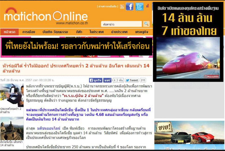 หัวร่อมิได้ ร่ำไห้มิออก! ประเทศไทยคว่ำ 2 ล้านล้าน อินโดฯ เดินหน้า 14 ล้านล้าน