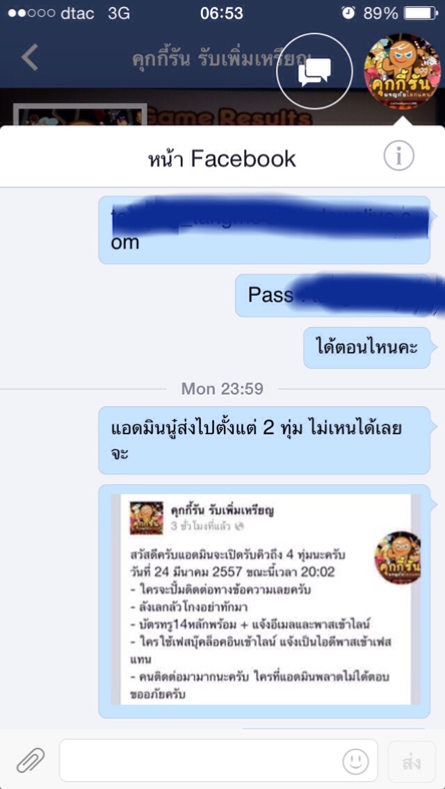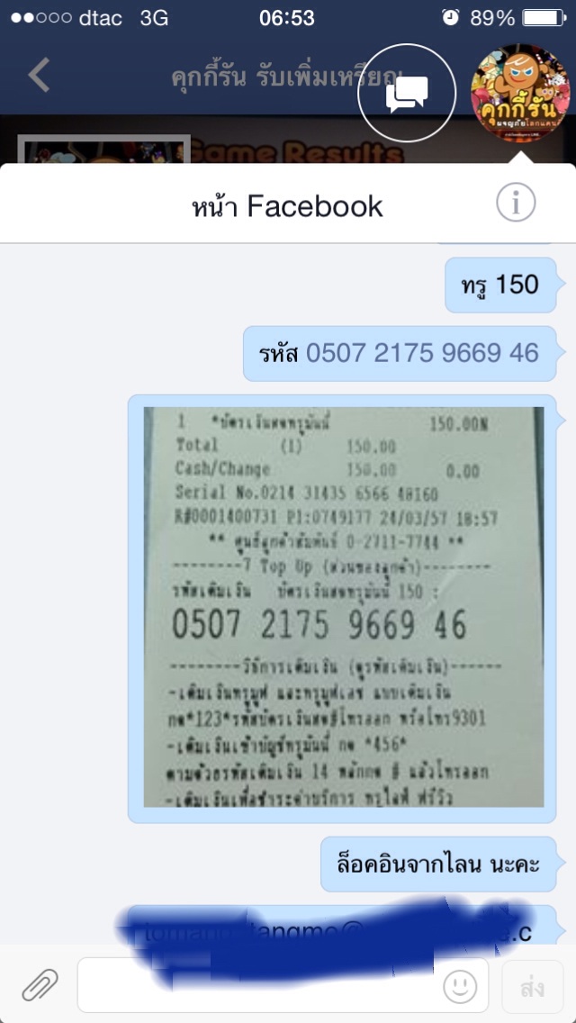คือเราเปนคนนึงที่ติดเกมส์ Cookie run มาก แต่ไม่อยากใช้วงเงินจากบัตร เลยได้ไปรุ้จักเพจในเฟสบุ๊คนึง หลังซื้อบัตรทรูมันนี่ไปให้ ( มันก้อไม่ได้มากหรอกค่ะ แต่รู้สึกว่าจะโดนกันหลายคน คนใกล้ตัวก้อมีเยอะ คาดว่าคงได้เงินเยอะพอตัว อันนี้เพิ่งรุ้ทีหลังเลยเม้ากันว่าเจอโกงเหมือนกัน ) เช้ามาเพจนี้ก้อหายไปเลยจร้าาาาา และแน่นอนว่าไม่ได้เหรียญ/ เพชร ใดๆทั้งสิ้น #ยังไงฝากเตือนเพื่อนๆด้วยนะจ๊ะ ภัยสังคม #สำหรับบางเพจอาจจะจริง ใช้วิจารณญาณกันด้วยจ้า #เราไม่ได้พาดพิงใครนะ แค่มีภาพประกอบ