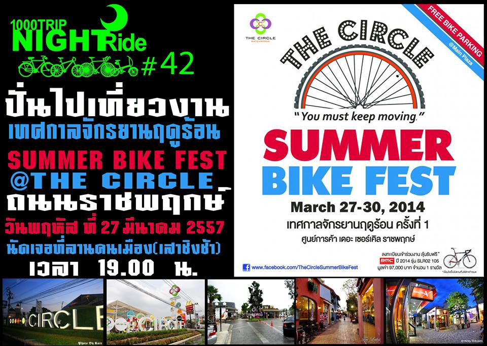 1000TRIP NIGHT Ride #42 ชวนปั่นไปเที่ยวงาน The Circle Summer Bike Fest 2014 เจอกันคืนนี้ที่ลานคนเมือง เวลา 19.00 น.ครับ