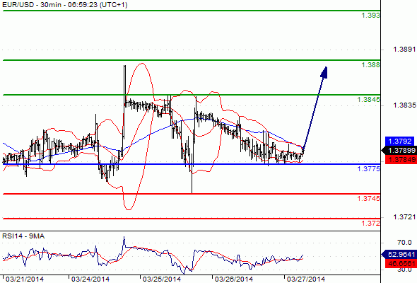 Our preference: Long positions above 1.3775 with targets @ 1.3845 & 1.388 in extension.