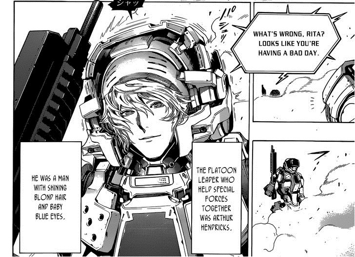 ผู้ชายหัวหน้าหน่วยพิเศษคนแรกของริต้าเป็นพี่ชายรูปหล่อสุดเพอร์เฟค เก่ง หล่อ ใจดี แต่ปัจจุบันริต้าคุมหน่วยแทนไปแล้ว แสดงว่า.....ขนาดใส่ exosuit ก็ยังโมเอะได้ ริต้าไปได้นิสัยชอบพูดเรื่อยเปื่อยเพื่อปลอบใจเพื่อนๆจากเฮียคนนี้นี่เอง (นามไปติดพระเอกแล้วด้วย)