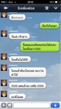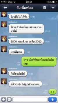 พอเราทักไป .... ก็แสดงการพิมแบบรำคานหรือไม่พอใจ ซึ่งก่อนหน้านี้ตอนยังไม่โอนเงินเขาบอกโอนเสร็จจะเริ่มงานทันทีพอมาตอนนี้ .... เอิ่ม บอกคิวยาวขอเป็นวันเสาร์ เราเลยแกล้งบอกขอเปลี่ยนเป็นทำพันนึงก่อนเขาไม่ยอม แบบนี้เราปี๊ดดมากก เกิดจากความโง่ของเราแท้ๆไม่น่าเลย TT