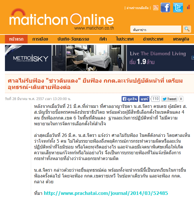 ศาลไม่รับฟ้อง "ชาวดินแดง" ยื่นฟ้อง กกต.ละเว้นปฎิบัติหน้าที่ เตรียมอุทธรณ์-เดินสายฟ้องต่อ