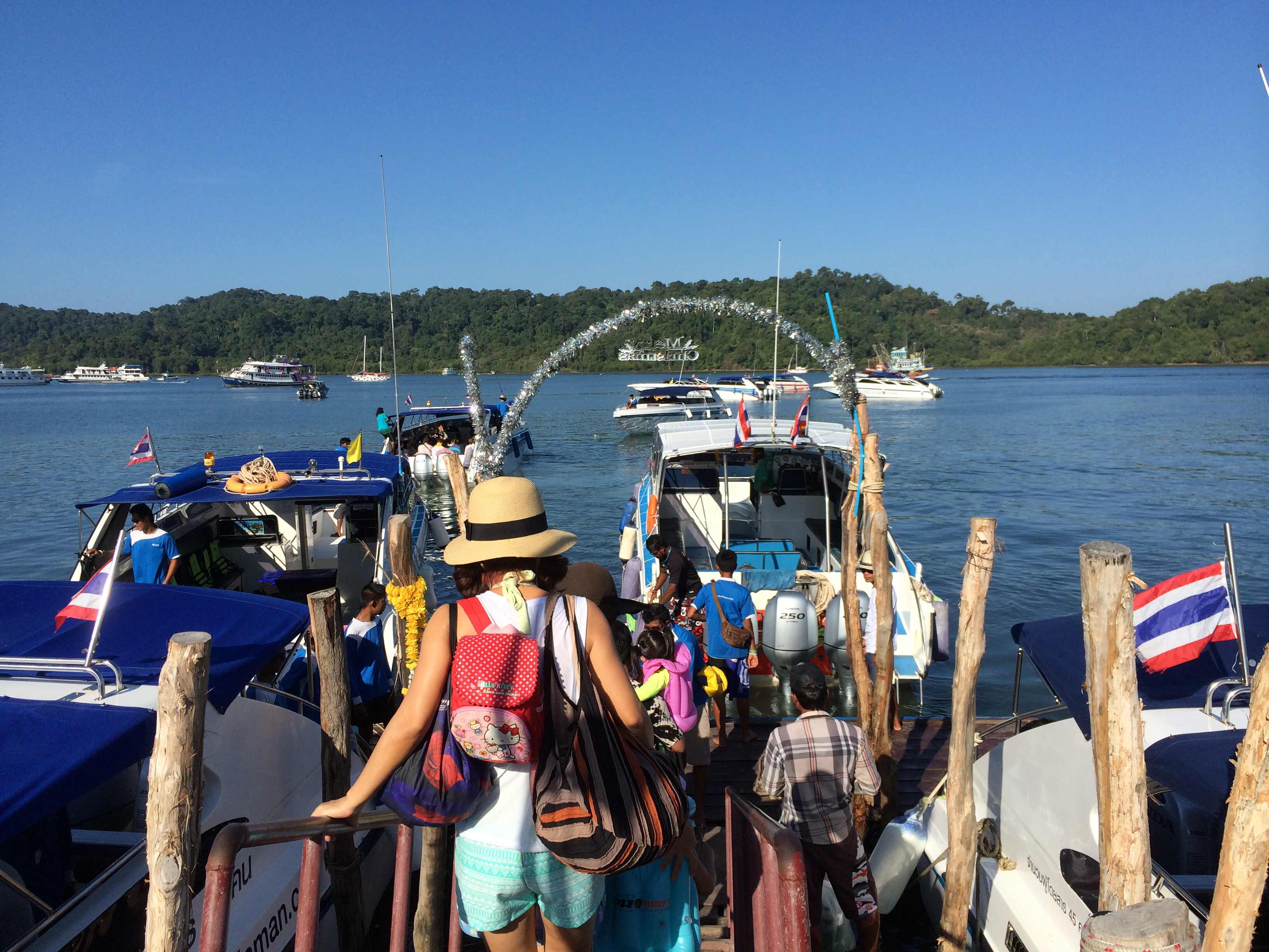 ถึงท่าเรือ 8.00 โดยประมาณ เช็คอิน รับ Wristband ได้สีชมพูอ่อนคะ เช็คชื่อเสร็จก็ไปต่อคิว ทานอาหารเช้าที่ love andamanจัดไว้ สักพักไกด์ประจำสีชมพูอ่อน ก็เรียกรวมกลุ่ม นำทีมไปท่าเรือ