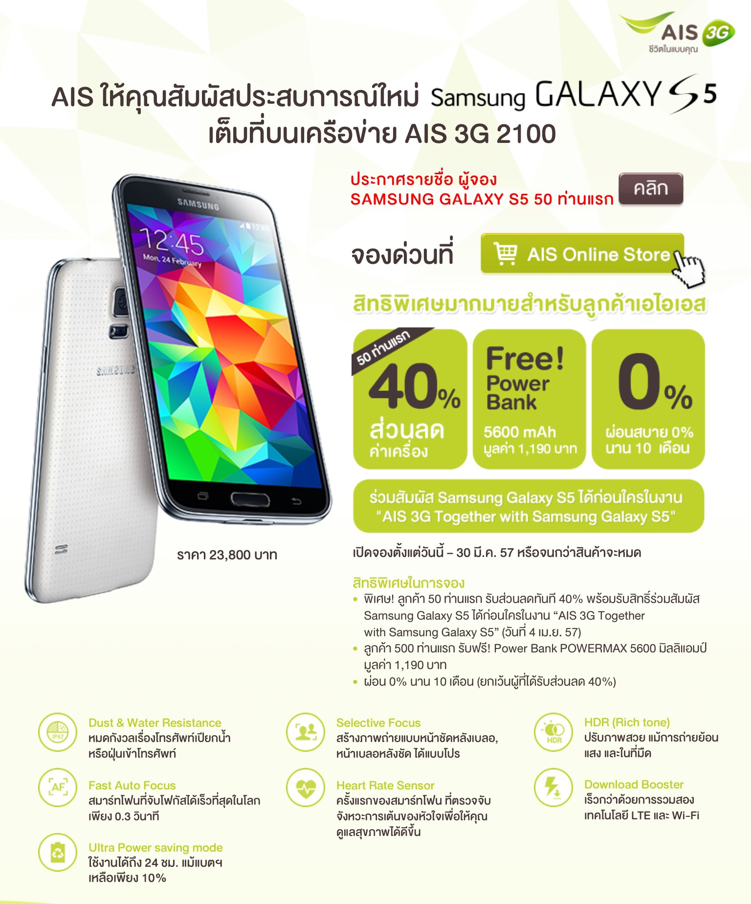 1.อยากทราบว่าผู้ที่จอง Samsung Galaxy S5 กับ AIS เวลาไปรับเครื่องจะต้องสมัครใช้แพกเกจตามที่กำหนดไว้หรือไม่ ถ้ามีแพคเกจที่กำหนด ได้แก่แพกเกจอะไรบ้าง และ ถ้าไม่มีแพคเกจที่กำหนด สามารถใช้ โปรหลัก (เช่น แพคเริ่มต้น) + แพคเสริมอินเตอร์เน็ตได้หรือไม่