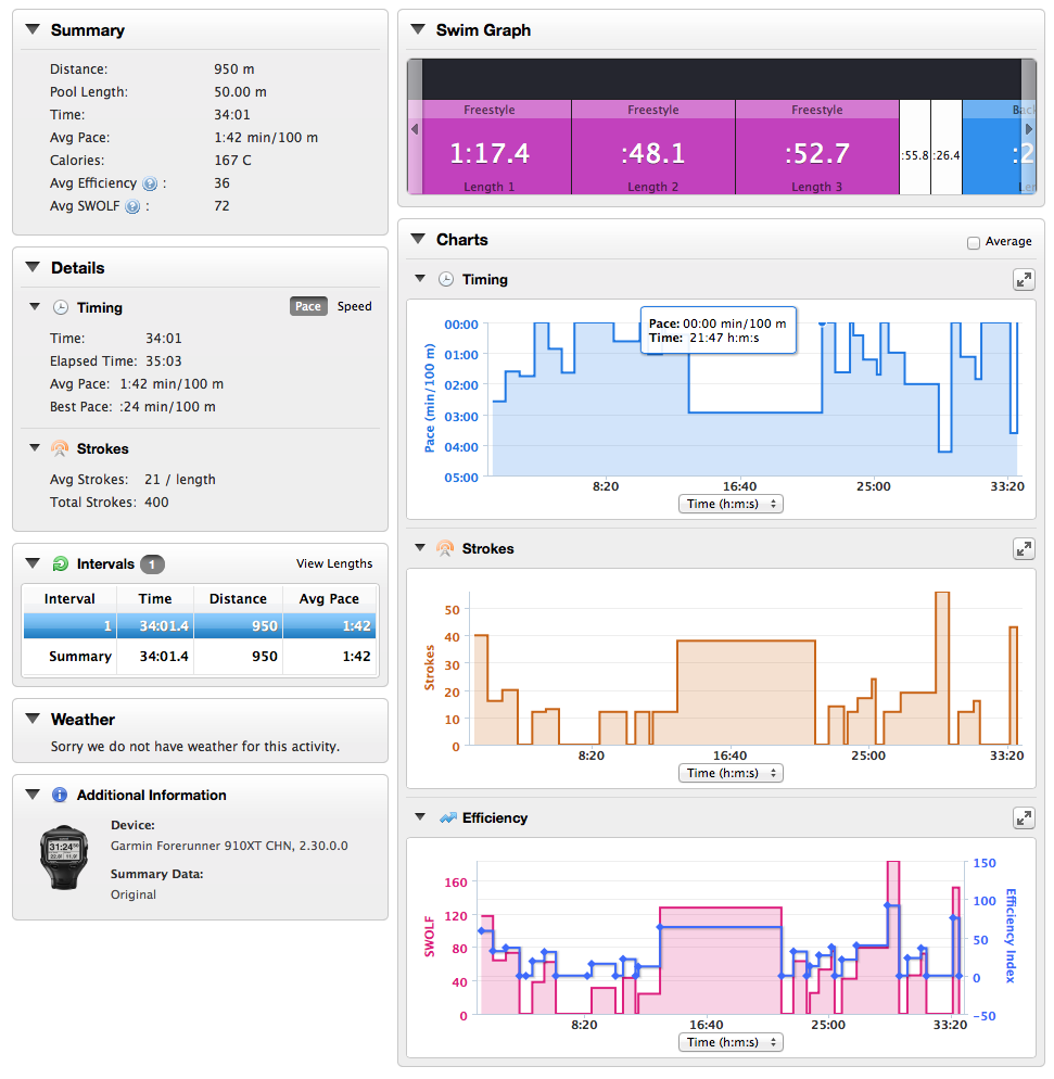 อันนี้เก็บข้อมูลการว่ายจาก Garmin Forerunner 910XT ครับ