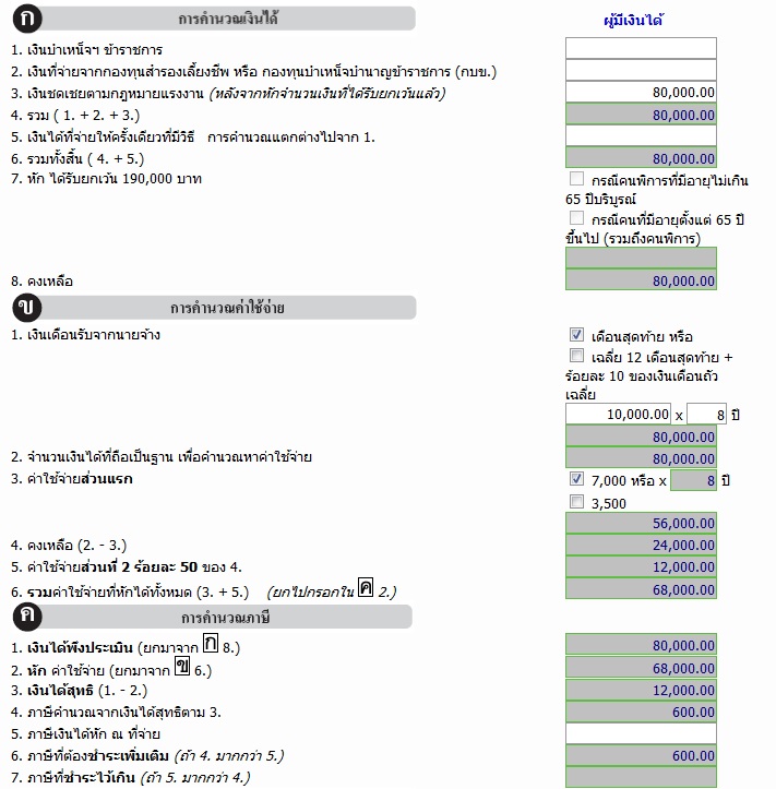 การคำนวนภาษีเงินได้บุคคลธรรมดา
