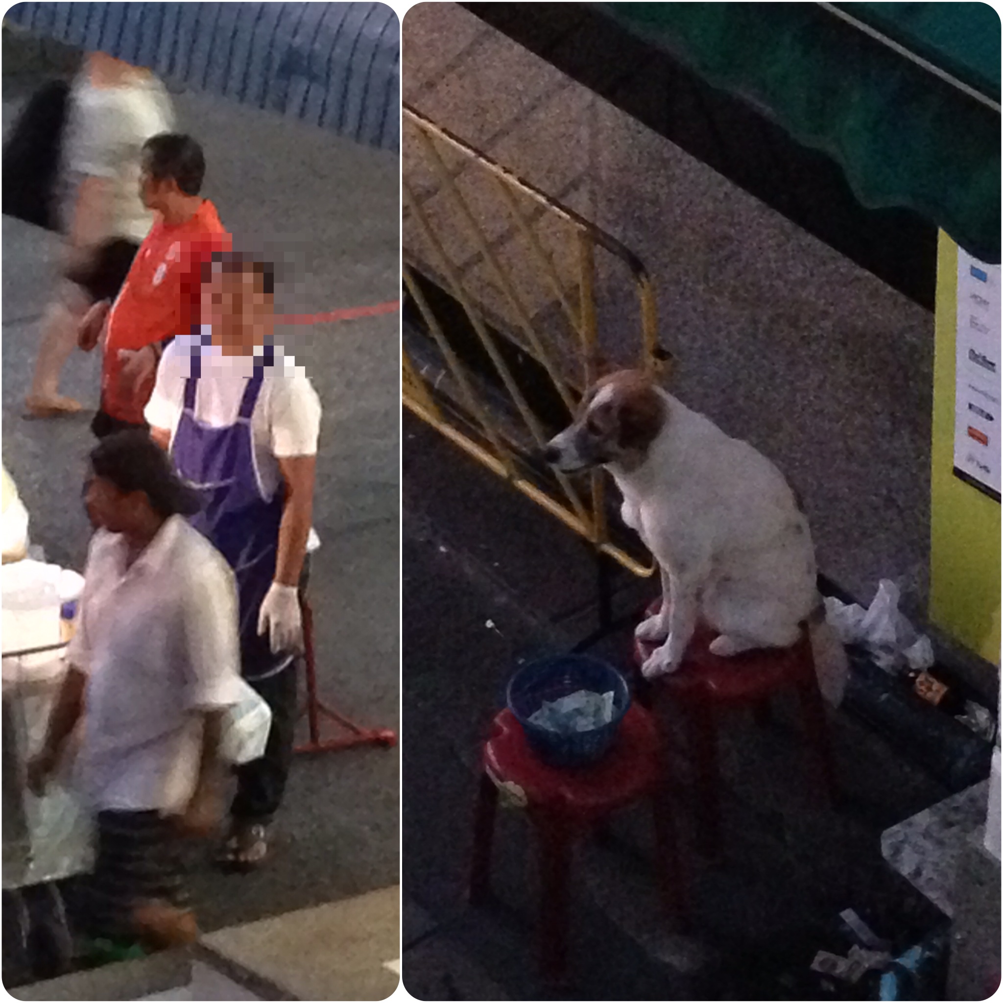 สุนัขตัวนี้เป็นของพ่อค้าในภาพขายข้าวโพด อยู่บริเวณหน้าห้างพาต้าปิ่นเกล้า พ่อค้านำสุนัขของตัวเองมานั่งบนเก้าอี้พร้อมตะกร้าเล็กๆเพื่อใส่เงิน สุนัขก็นั่งนิ่งๆตลอด แทบจะไม่ได้ลุกไปไหน