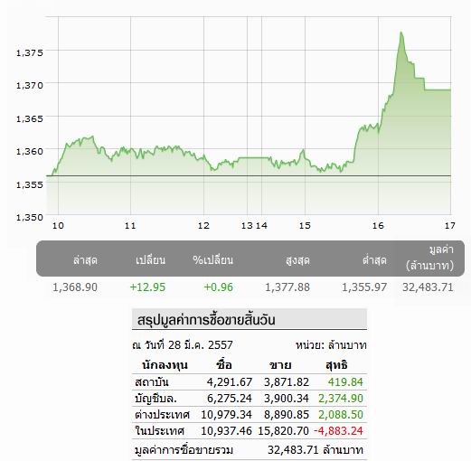 31/3/2557 ฝ่าแนวต้านสำคัญแล้ว : ยังคงจะไต่ระดับต่อ
