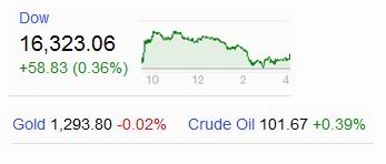 ดัชนีดาวโจนส์ อยู่ในเขตเขียวทั้งวัน มีพุ่งขึ้นแรงเช่นกัน ปิดออกเขียวแก่ +58.83 จุด