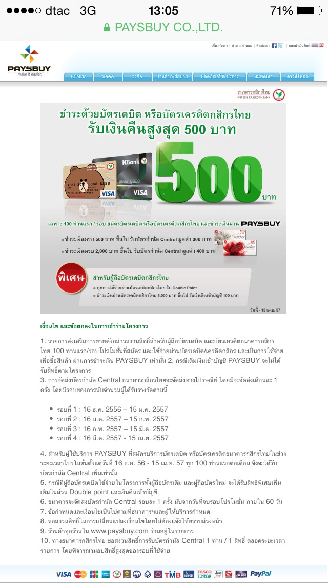 คือเมื่อกี้ผมชำระค่าโทรศัพท์ของDtacผ่านAppโดยตัดบัตรเครดิต มีให้เลือกว่าจะชำระแบบปกติหรือชำระผ่านpaysbuy