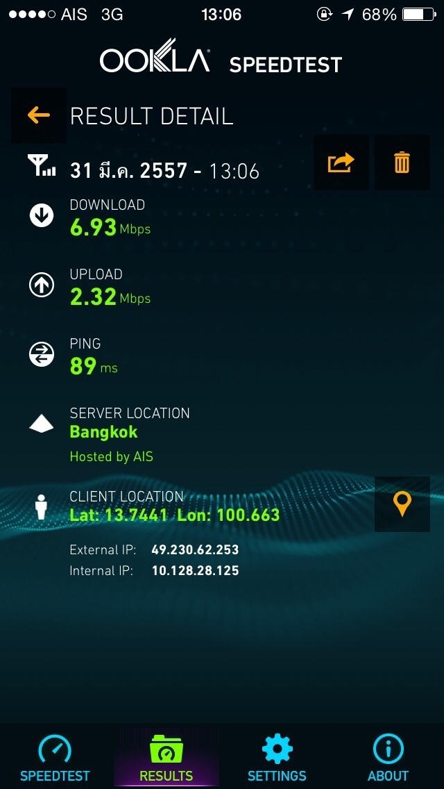 เลยลองเช็ค Speed ขำๆ บระเจ้า! เกือบ 7 เมก เกือบเท่า wifi ที่บ้านเลยนะเนี่ย แรงไม่ธรรมดานะ AIS