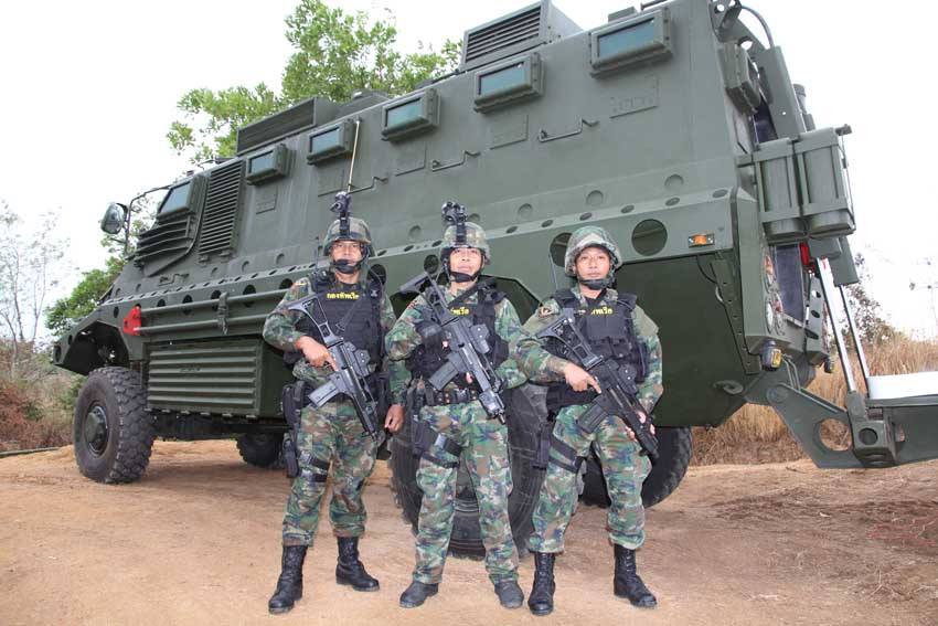 PHANTOM 380-X หรือ Cobra รถหุ้มเกราะล้อยาง 4X4 สร้างในประเทศไทยโดย D-Corps Asia ขนาด 19 ตัน ความยาว 8 ม. กว้าง 2.50 ม. สูง 3.60 ม. เครื่องยนต์คัมมินส์ ขนาด 380 แรงม้า ความเร็วสูงสุดบนถนน 120 กม./ชม. พลประจำรถ 11+2 นาย มีป้อมติดอาวุธได้หลากหลาย...ขณะนี้ทหารนาวิกโยธินนำไปทดลองใช้งานในภาคใต้แล้ว Phantom 380-X ตัวนี้มีการป้องกันระเบิดได้ยอดเยี่ยม ด้วยการออกแบบตัวถังใต้ท้องเป็นรูปตัว "V"Shape ทนแรงระเบิดขนาด 14 กก.ขึ้นไป....รายละเอียดอ่านได้ใน "สมรภูมิ" เล่มใหม่วางตลาดวันที่ 5 เมษายน 2557...โปรดติดตาม..