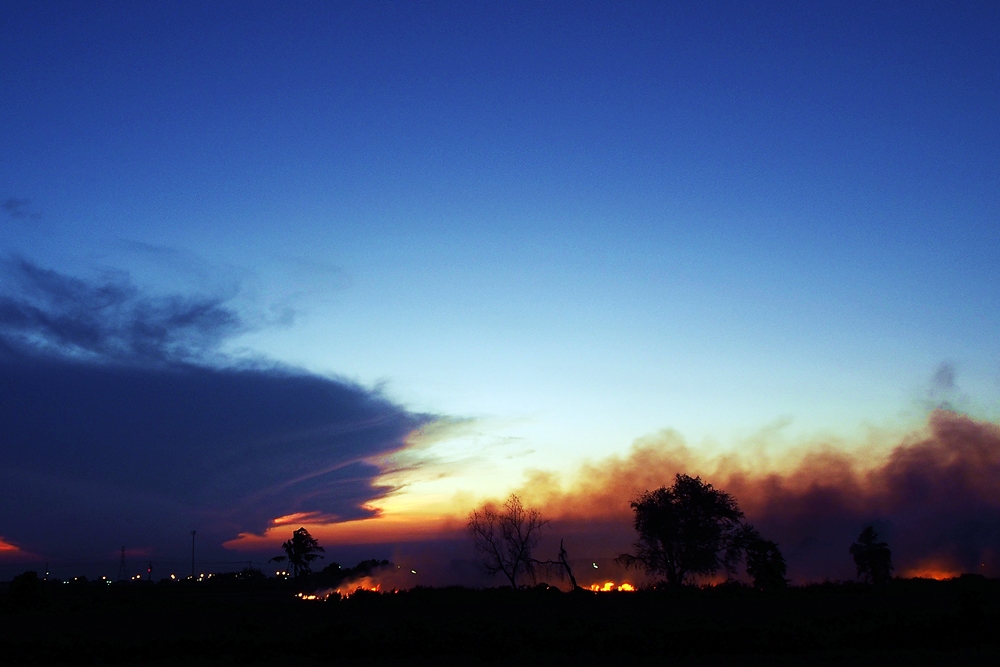 รูปเปิดนี่ถ่ายนาข้างบ้านเมื่อเย็นนี้ ฟ้าสวย แต่ชาวนาก็เผาซังข้าว เลยไม่รู้ว่าฟ้าหรือไฟ อะไรมันร้อนแรงกว่ากัน