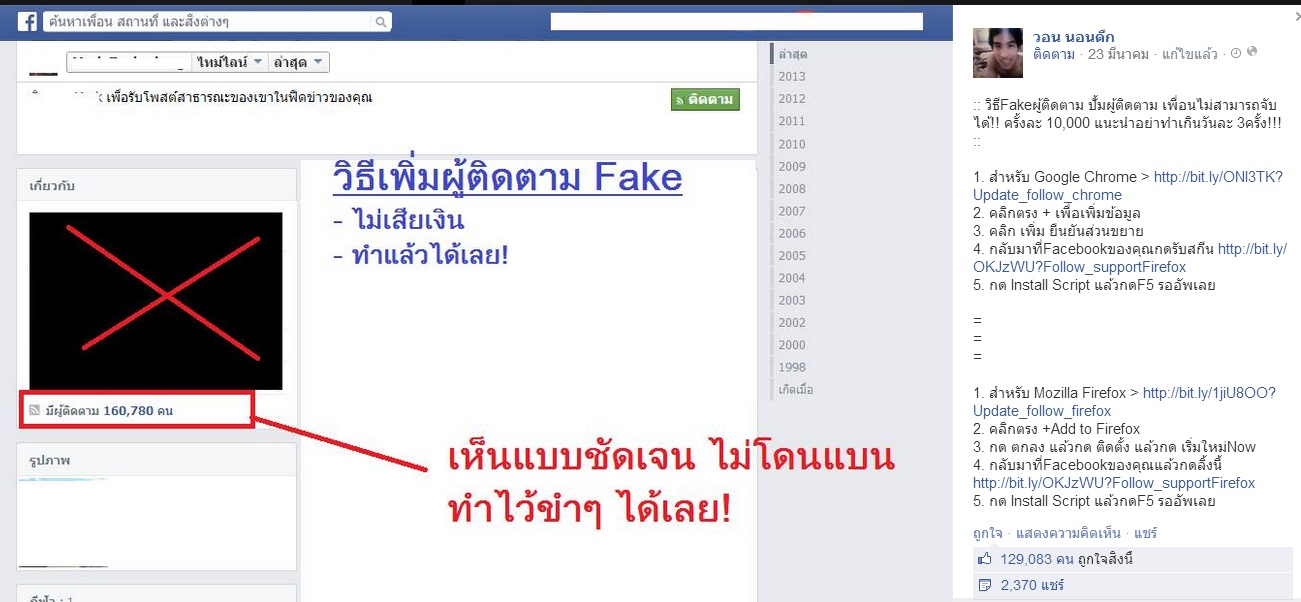 จากนี้เลยเกิดคำว่าถามการโดนครั้งแรกของผม "เป็นไปได้ไหมว่า facebook ส่วนตัวของผมไม่ได้ ถูกนำไปกดทำตามขึ้นตอนการโหลดอิโมชั้น หรือการหลอกทำวิธีการเพื่มผู้ติดตามนั้น แต่มีคนอื่น เคยนำ facebook ส่วนตัวของตัวเองไปทำตามขั้นตอนพวกนั้นไว้ แล้วบราวเซอร์ก็โดนฝังแอฟสแปมนั้นไว้ แล้วเพียงแค่ผมไปออน facebook ของผมต่อ ในบราวเซอร์ตัวนั้น เครื่องนั้น ก็จะโดนได้เลย" ขอบคุณครับ