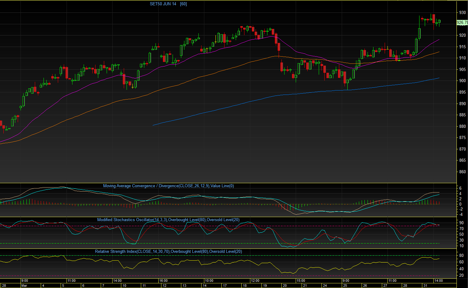 TF60 : เมื่อวานนี้ แกว่งตัวในกรอบแคบๆ (929-922) หลังจากที่วันก่อนขึ้นมาอย่างรุนแรง วานนี้เลยหมดเรี่ยวแรง และเรียงตัวแท่งเทียน