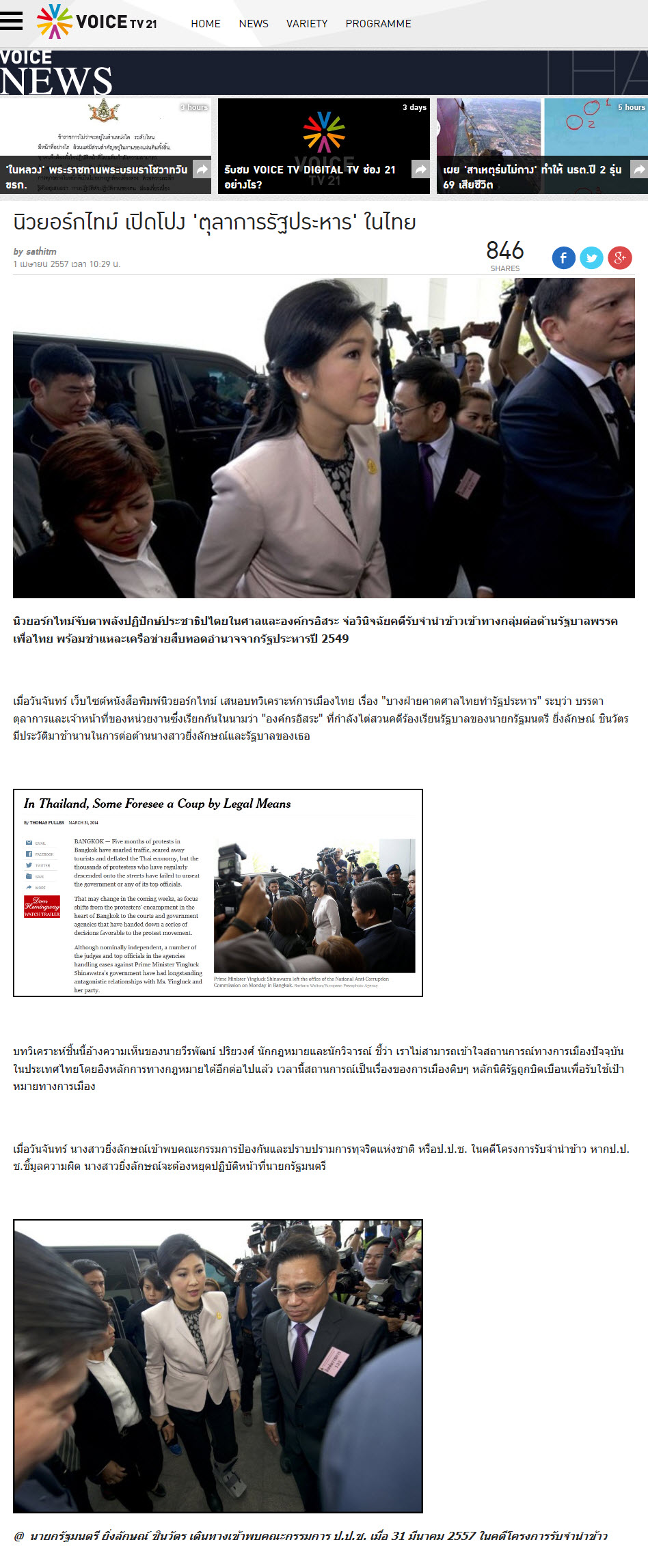 https://www.youtube.com/watch?v=G4dyYX-NEEM&feature=youtu.be นิวยอร์กไทม์ส ระบุว่าท่าทีของศาลแพ่งเมื่อวานนี้(19 ก.พ.) ทำให้ประเทศไทยก้าวเข้าไปสู่การถูกรัฐปร