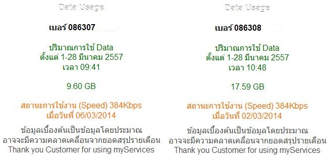 เดือนที่แล้ว รวม 2 เบอร์ใช้ DATA ไปประมาณ 40GB