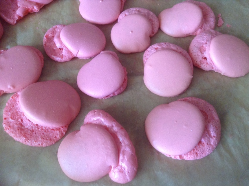 มาการองทำออกมาแล้วขาเป็นแบบนี้ค่ะ (ยืมรูปจากในเน็ตนะคะ) ใช้สูตร Italian Meringue จากหนังสือเล่มนี้ค่ะ แต่ลดส่วนผสมไป 1/4 ของสูตร แต่ไม่ได้ทำตามสูตรบอกเป๊ะๆนะคะ ใช้เทคนิคจากในเว็บต่างๆด้วย อย่าง