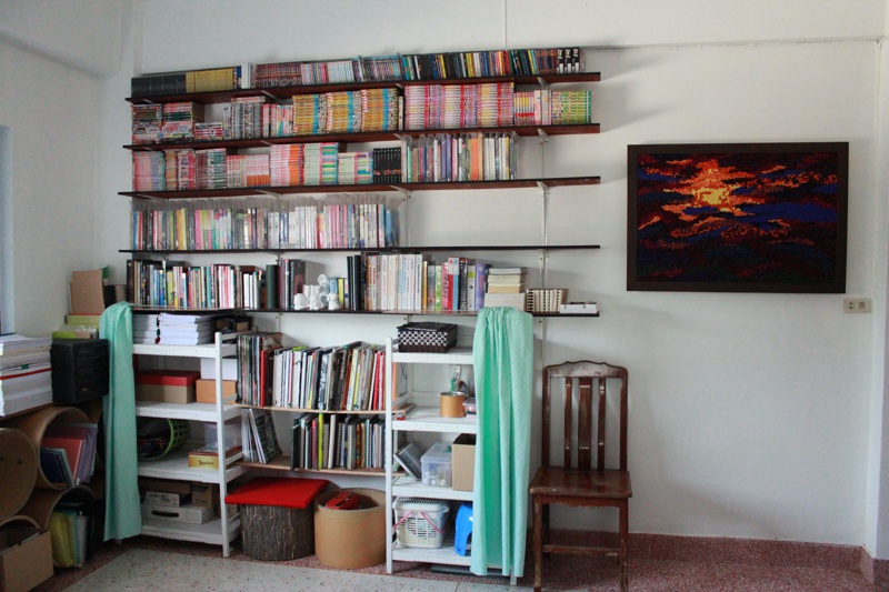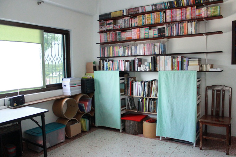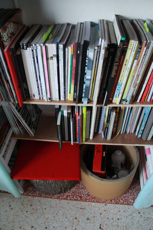 ตู้วางหนังสืออันนี้เดิมเป็นแนวตั้ง มันสูงไปหาที่วางไม่ได้เพราะผนัง