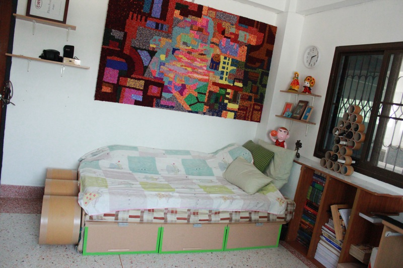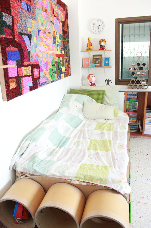 ส่วนเตียงก็เอาของเก่ามาดัดแปลงใหม่ ถลกเปลือกนอกของมันออก